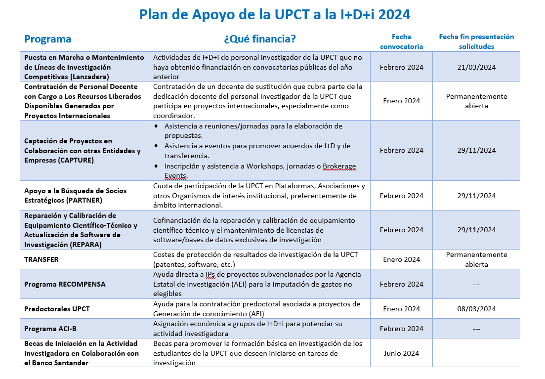 Las solicitudes, dirigidas al Vicerrectorado de Investigación, Transferencia y Divulgación de la UPCT, se presentarán a través del Registro Electrónico de la Sede Electrónica de la UPCT (https://sede.upct.es/inforegistro.php), adjuntando el formulario de solicitud correspondiente a cada programa.